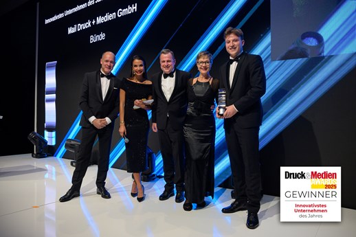 Bei den 21. Druck und Medien Awards 2025 wurden wir als „Innovativstes Unternehmen des Jahres 2025“ ausgezeichnet.